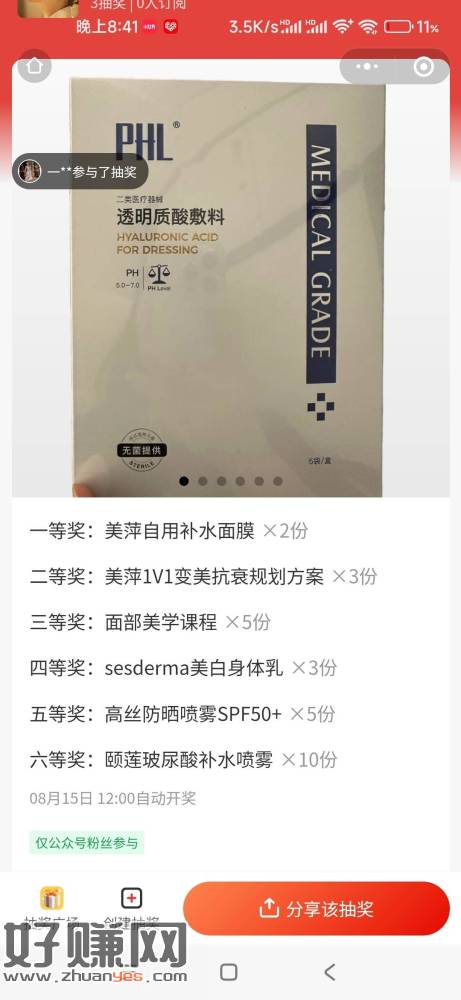#公众号:美萍面部抗衰 回复:抽奖 奖品:面膜 身体乳防晒喷雾 奖品数量还是挺多的,大家可以试一下