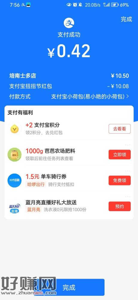 ZFB,会员中心,嗖[ 中行 ] 99积分兌2中行红包