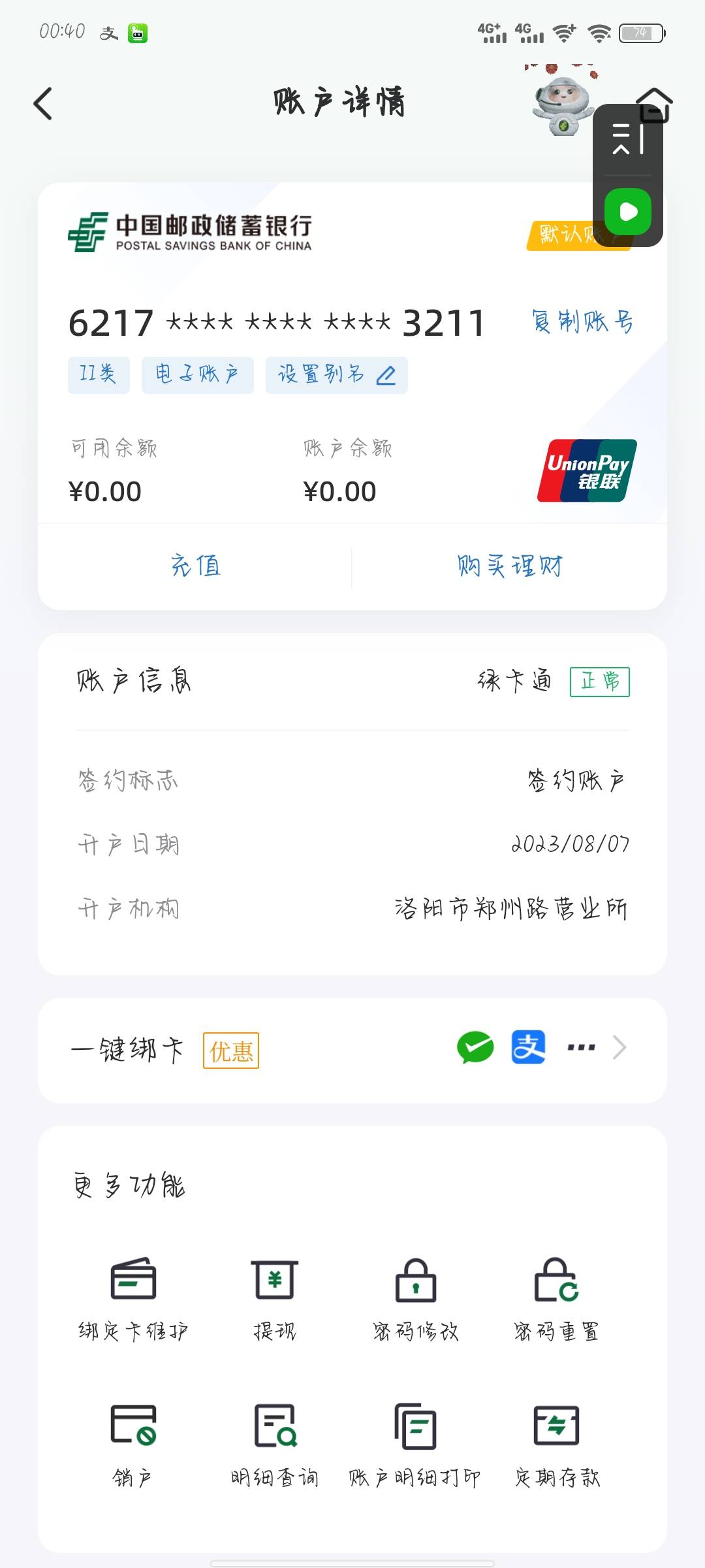 河南洛阳邮储绑支付宝6毛,自测,我是首绑