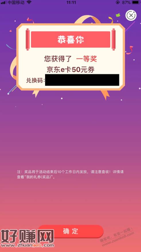 农行充话费后抽奖获得了50元jdE卡 刚刚买了农行一元的省钱月卡,把5r的支付立减金用来充话费。充完后有弹窗出来抽奖,然后中了一等奖50e卡!