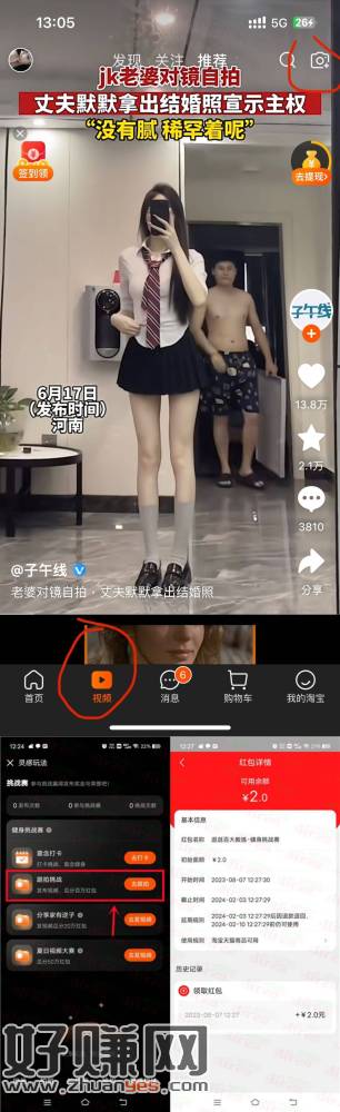 tb点底部[ 逛逛 ]再点右上角小相机,点[ 跟拍挑战 ]发5秒视频