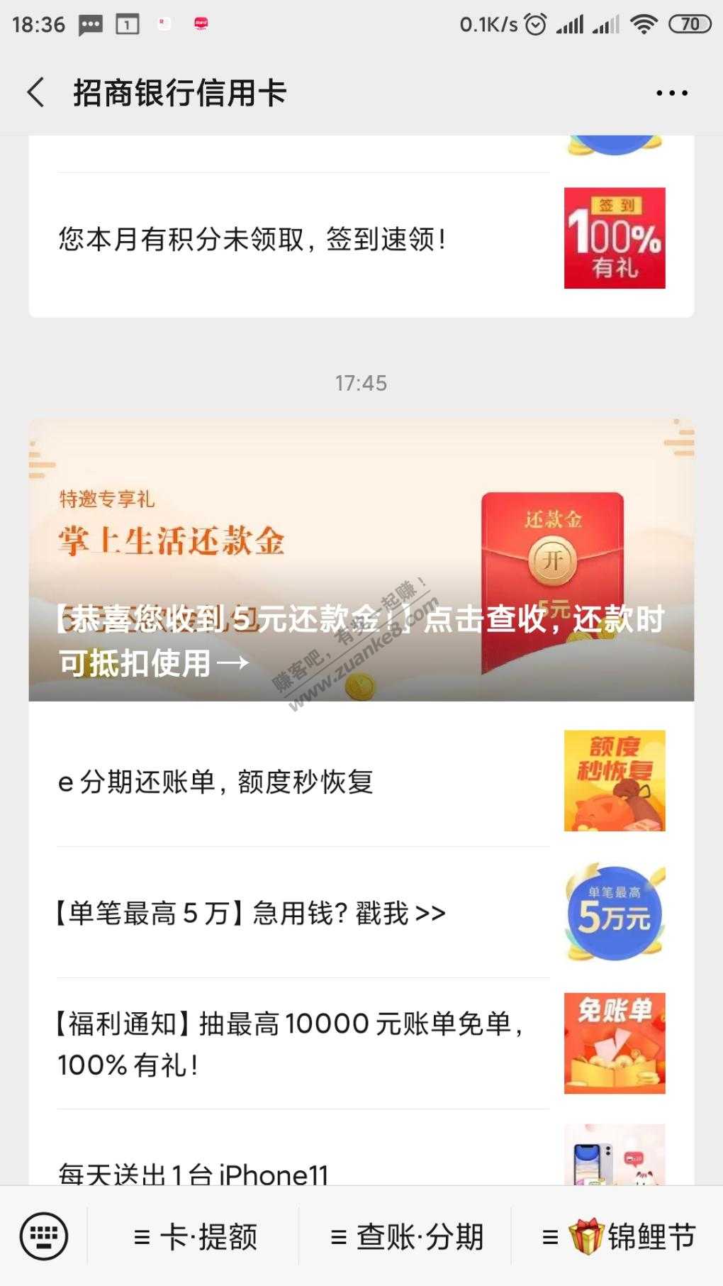 微信公众号:招行xing/用卡第一条,5元还款券,3 2.写受邀,但是没问题。手机码字不易。好用加果。现在还有很多
