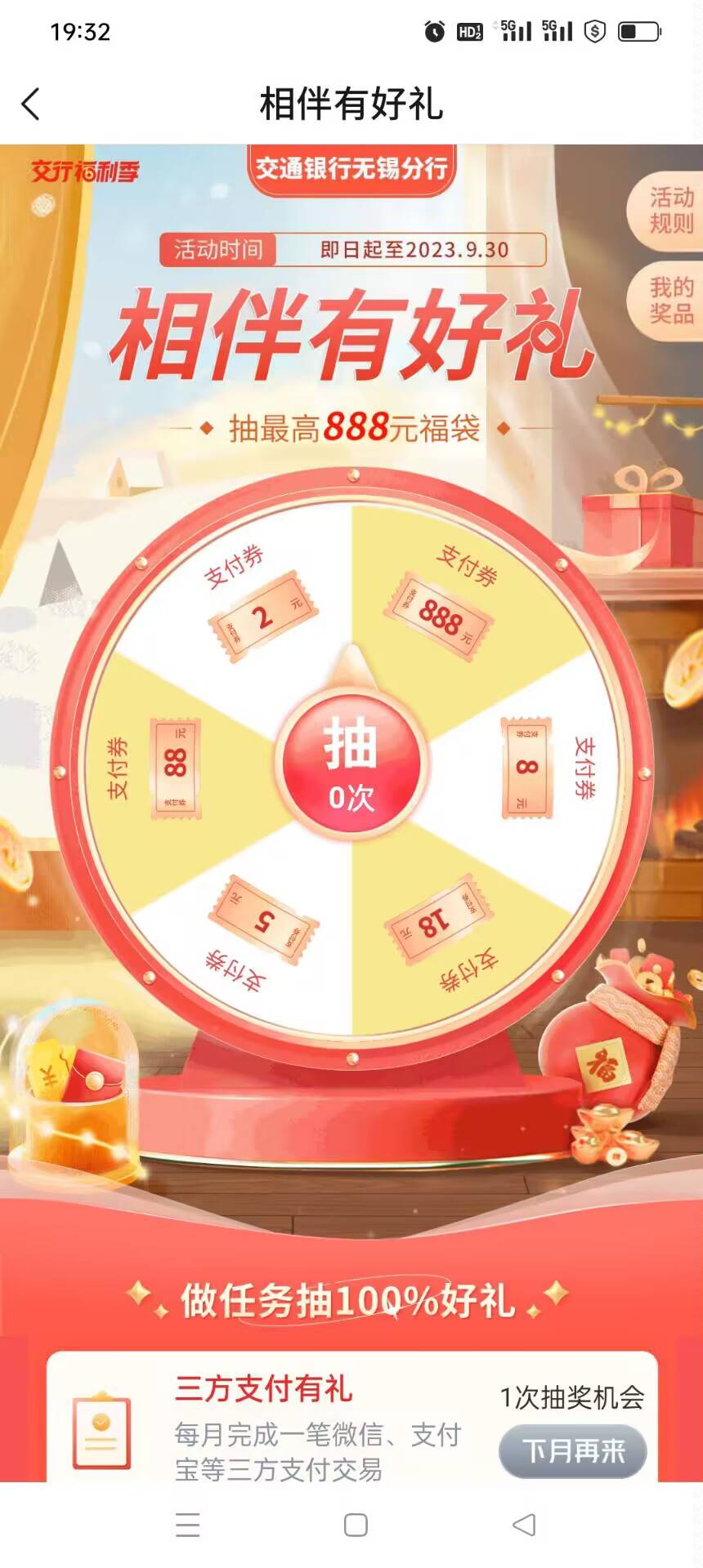 娇娇有无锡一类卡或者是二类卡的交行生活定位无锡刚抽到五元,最高888