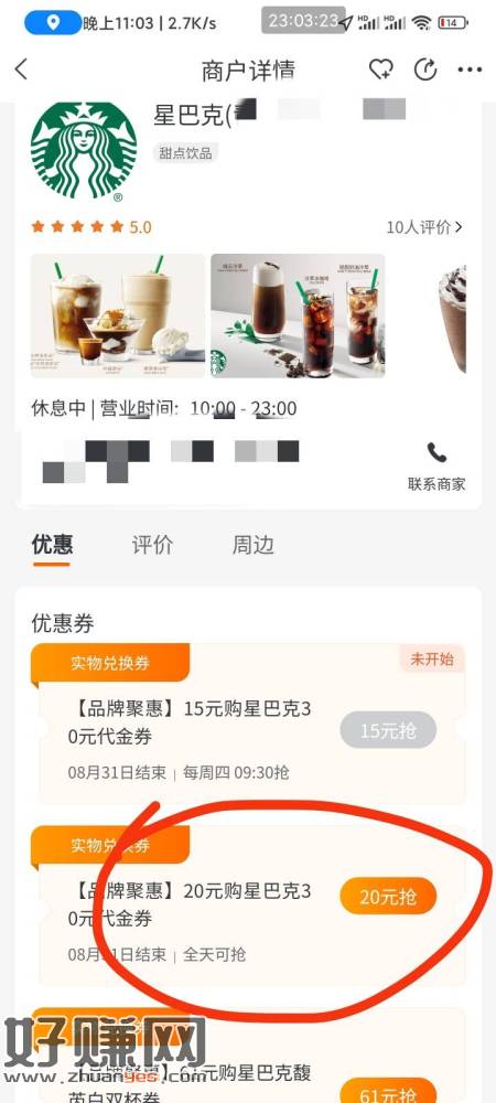 12点领 每天润5 建行生活搜星巴克随便进一家店 20元买3