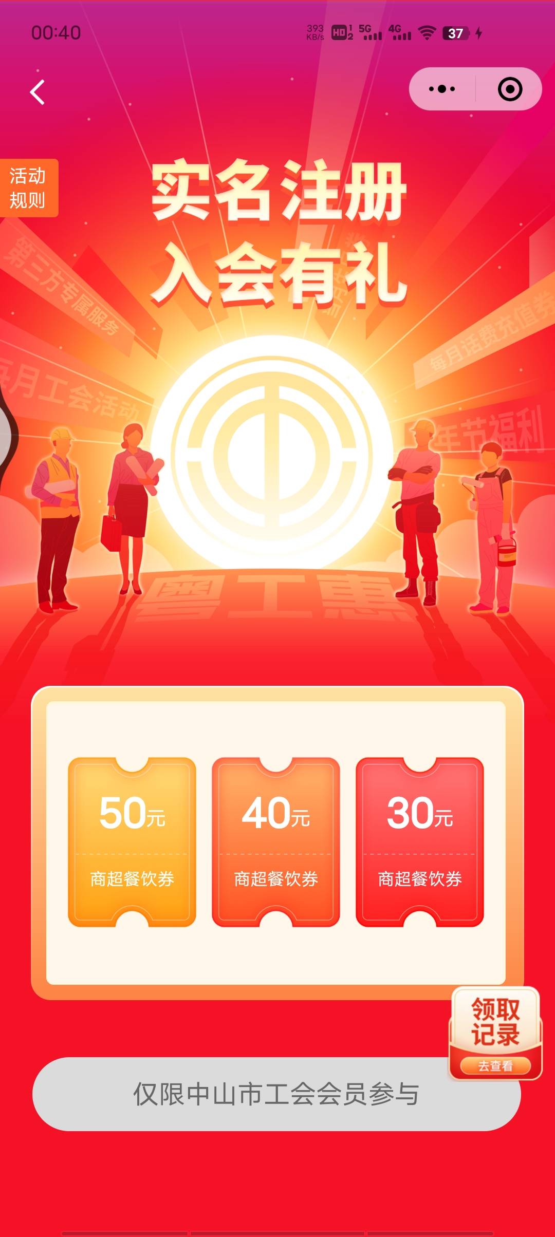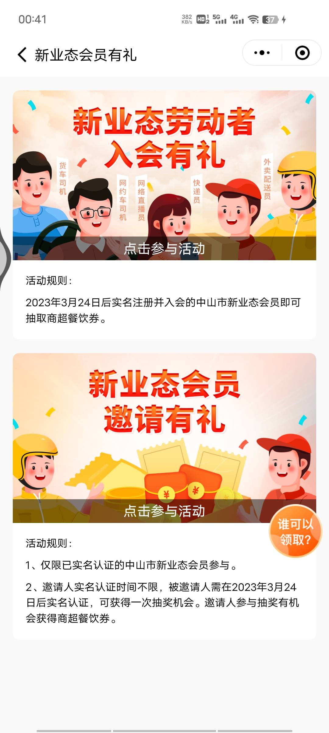中山工惠小程序,图一第二个进去非新行业有没有老哥推个工会!!!图一第三个横幅是新行业。已经抽了50。想试试中山非新