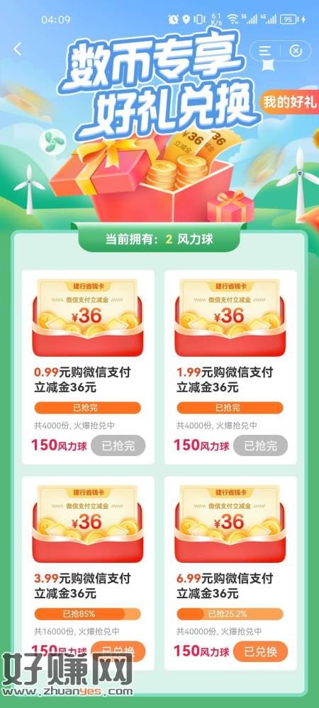 建行,绿色支付达人,地上铁用建行数币,刷到300风力球,速度兑换,不多了。