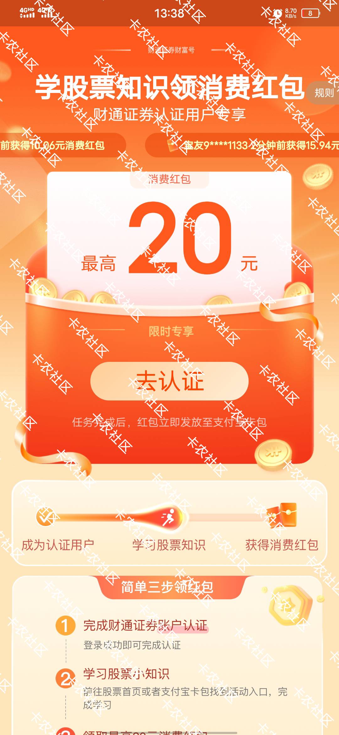 zfb 开财通证券没入口的 搜黄金票 任务里面开 没有任务就不能领那个