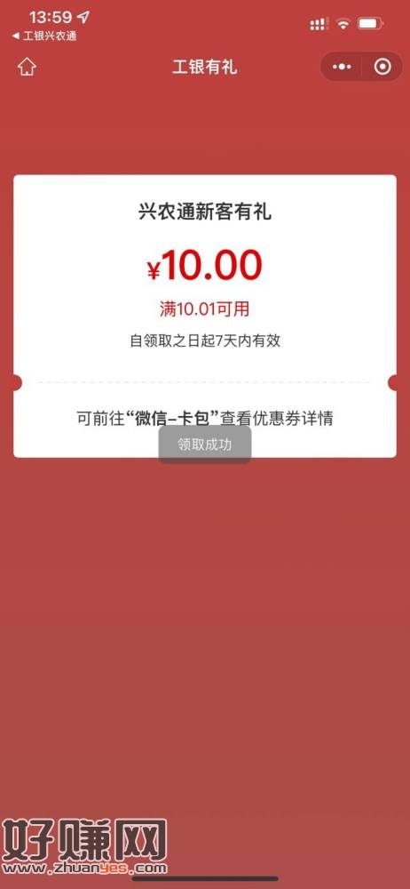 工行飞洛阳兴农通领10立减金 之前领过的就不用去了