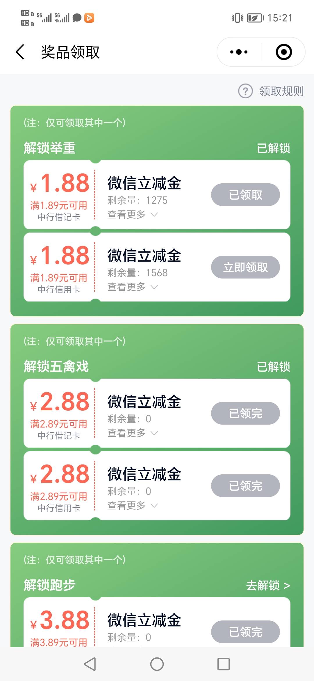 中行运动1.88补了,前天没领的可以去了