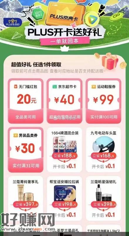 今天8月8日,京东Plus会员日有99元开会员卡/续费礼,开卡礼加码,包括40元京东超市卡、0.1元购实物礼品