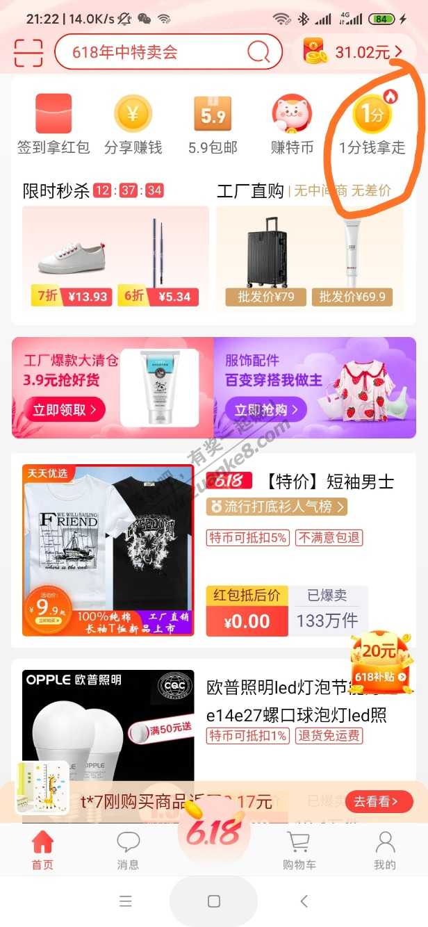 特价版app首页一分钱拿走,点进去拉自己小号助力就行,拉3个小号20无门槛通用红包,还能跟5叠加。