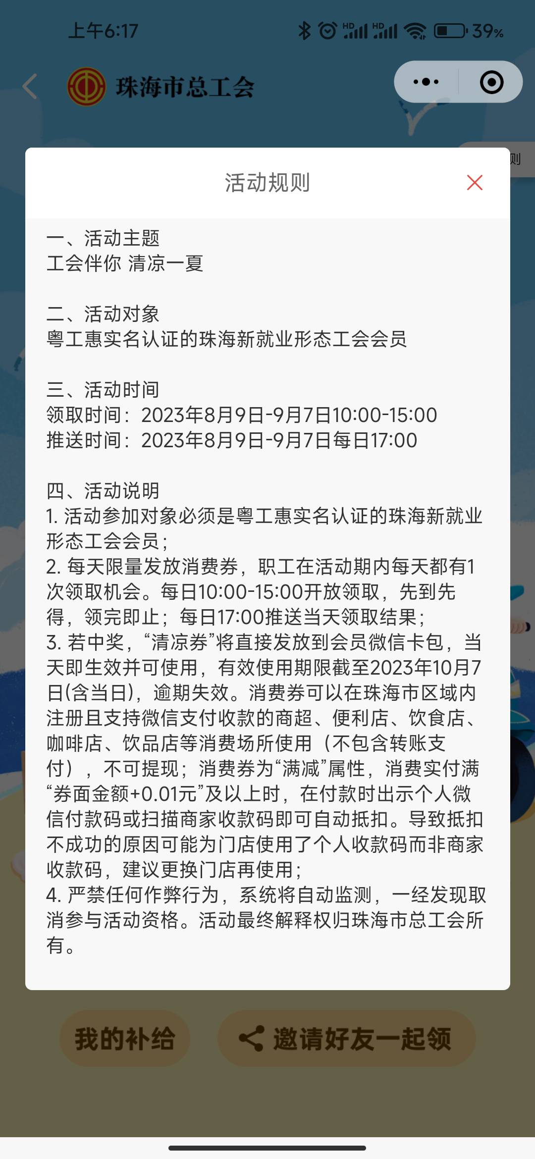 新一期珠海工会每日领3毛,和第一次一样上午领取下午发放,珠海工会小程序