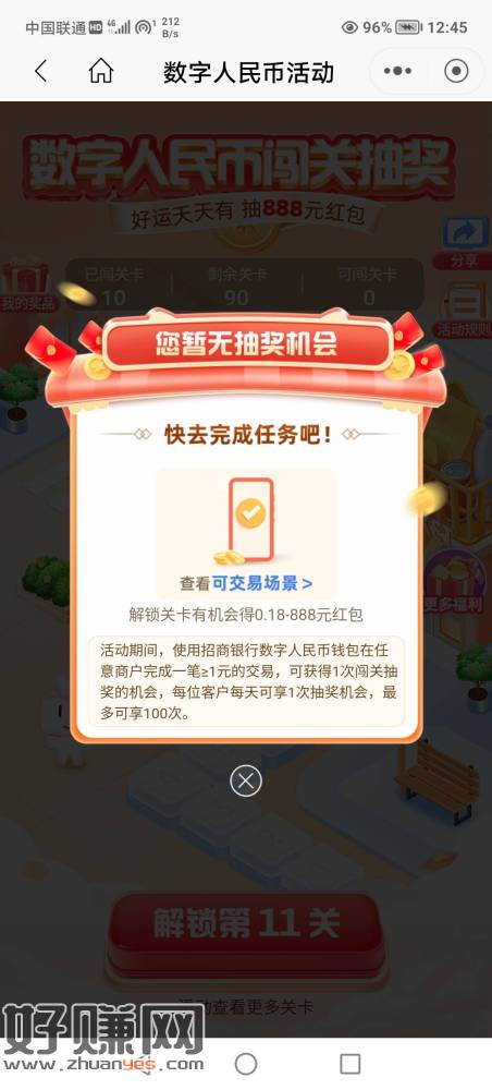 招行热门活动,任务中心,数币闯关抽奖共100关每天一关
