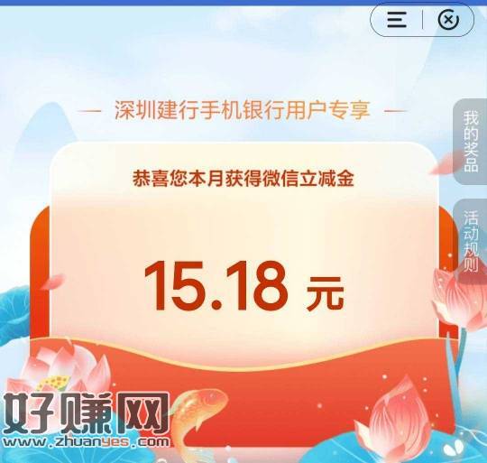 深圳建行月月领金本月第二次更新,有卡的去飞,15毛