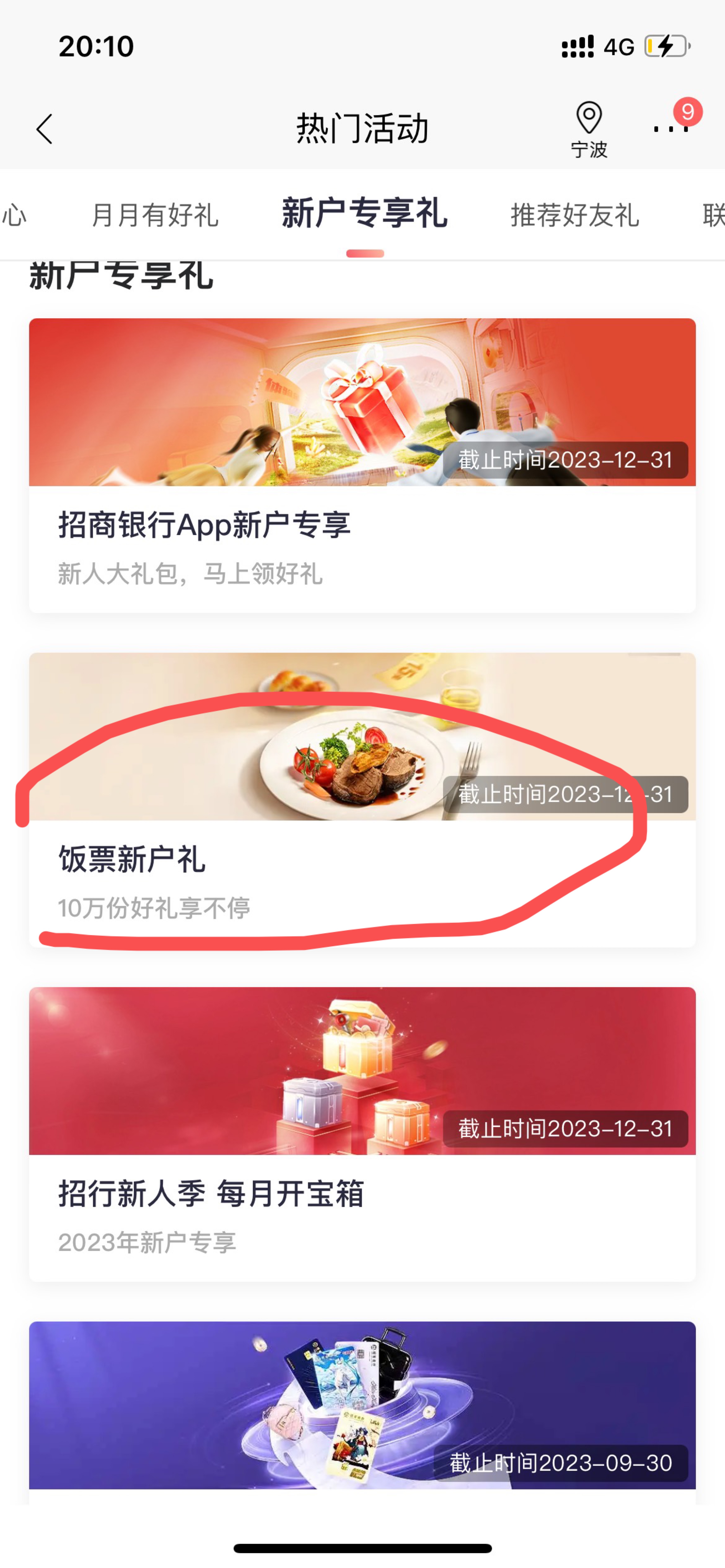 招商两个饭票活动 饭票新人里都在热门活动里可以 转手可以拿到17