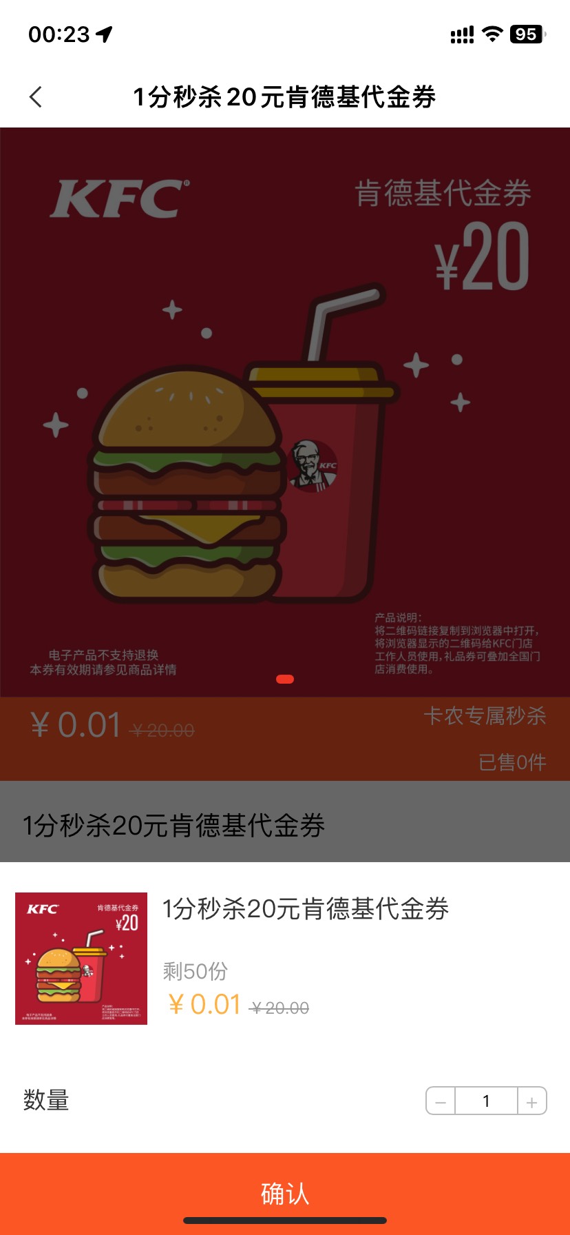 明天准备放卡农专属秒杀之老农厦门肯德基,W视时间,争取50份都让卡农老