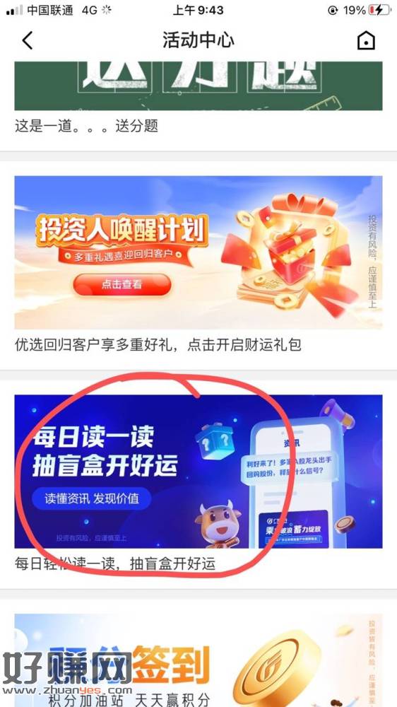 广发证券app 我的,活动中心 下拉到每天读一读做任务抽 靠运气
