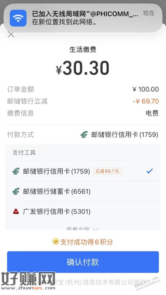 支付宝邮储xing/用卡电费优惠