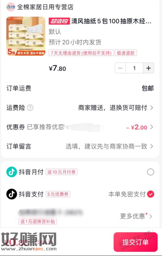 ③抖音扫图2,买清风抽纸5包100抽【0.8包邮】
