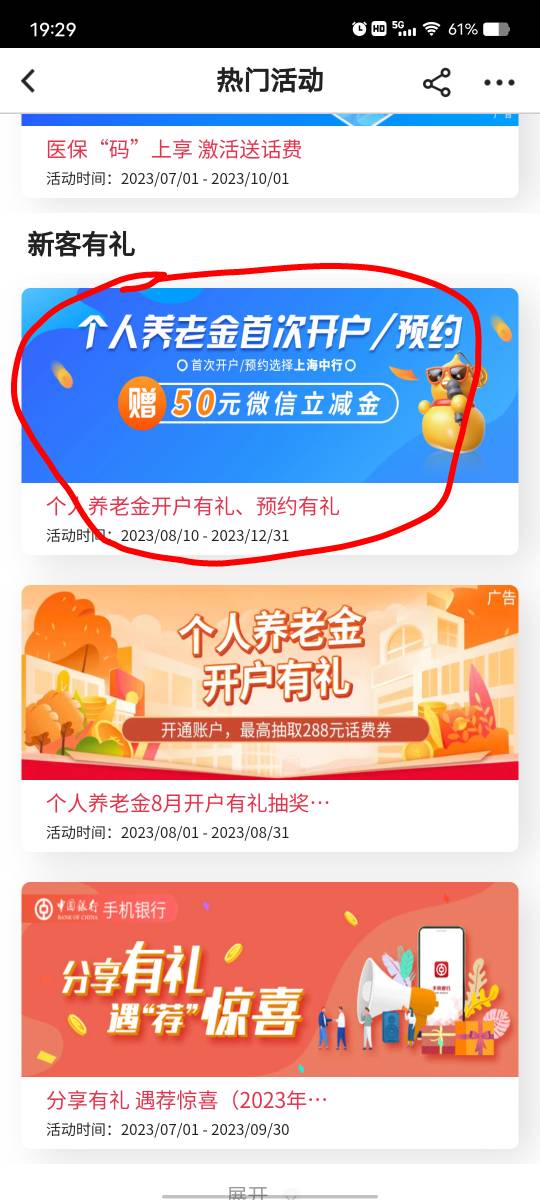 中行热门活动预约养老金 网点选上海 就有50 不用开户 不是试点地区才能预约好像 去试试吧