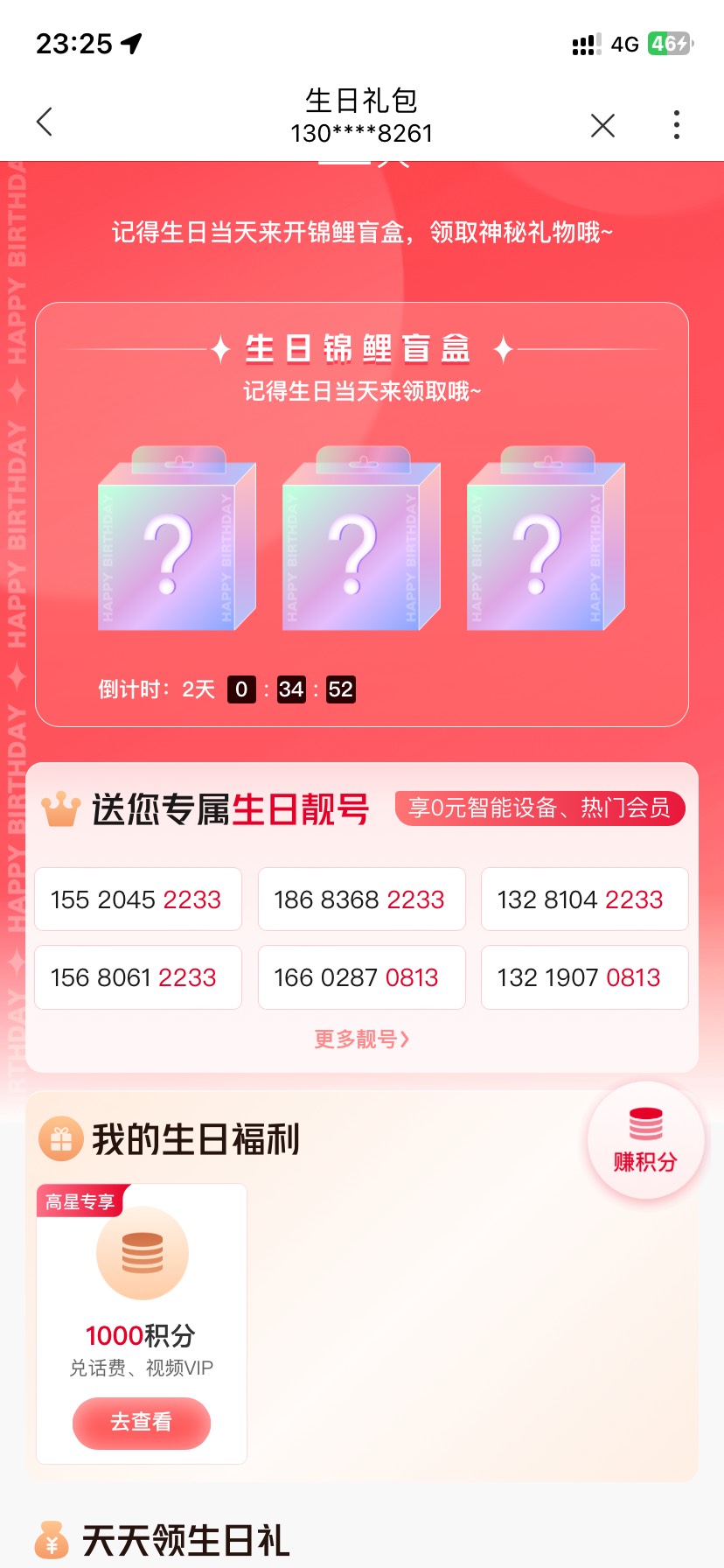 8月生日的去联通app领1000积分,可以充话费,也可以兑换其他的,前