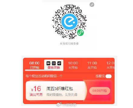 8点开始,饿了么周五抢5折,数量很少,需要抢
