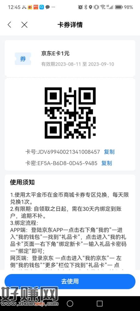 太平通app,1元e卡每周可兑一次(今天周五),100金币很