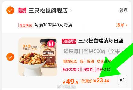 三只松鼠湊单史低,23亓,,三只松鼠罐装每日坚果500g