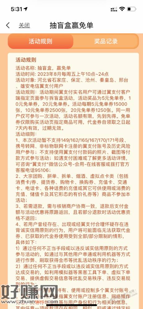 【翼支付】翼支付日8月盲盒活动来啦!每周五上午10点准时开抢,即抽即中,最高可抢20元免单券,更有网红大肚杯和多口味整包拌面等你带回家,数量有限,先到先得哦,点https://payeasy.cn/UhmRh 速抢(如已参加请忽略)。