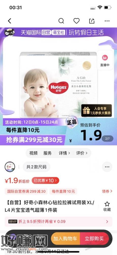 天猫国际搜索好奇,价格排序最低,纸尿裤,拉拉裤各买一份