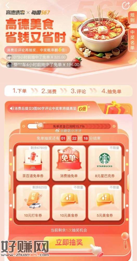 高德地图 app搜 免单 完成任务有机会中免单劵/打车劵等