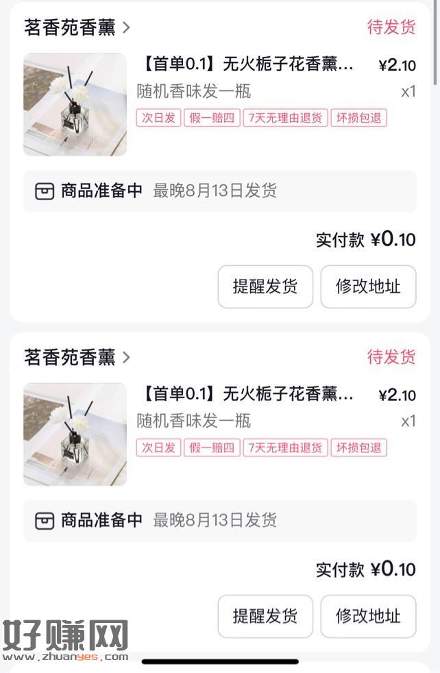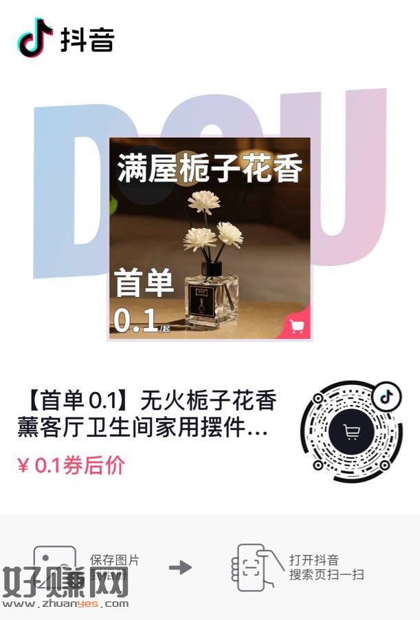 抖音扫码,0.1一瓶香薰包邮,一个号可以下2单