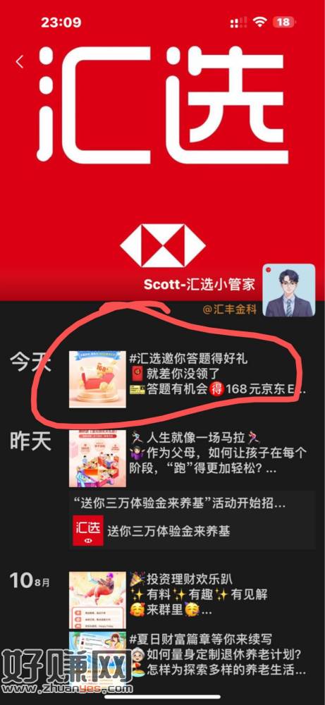 有汇丰会选企v的朋友圈第一条定位北上广深杭佛 必中2.88可以拉人但是现在吞头