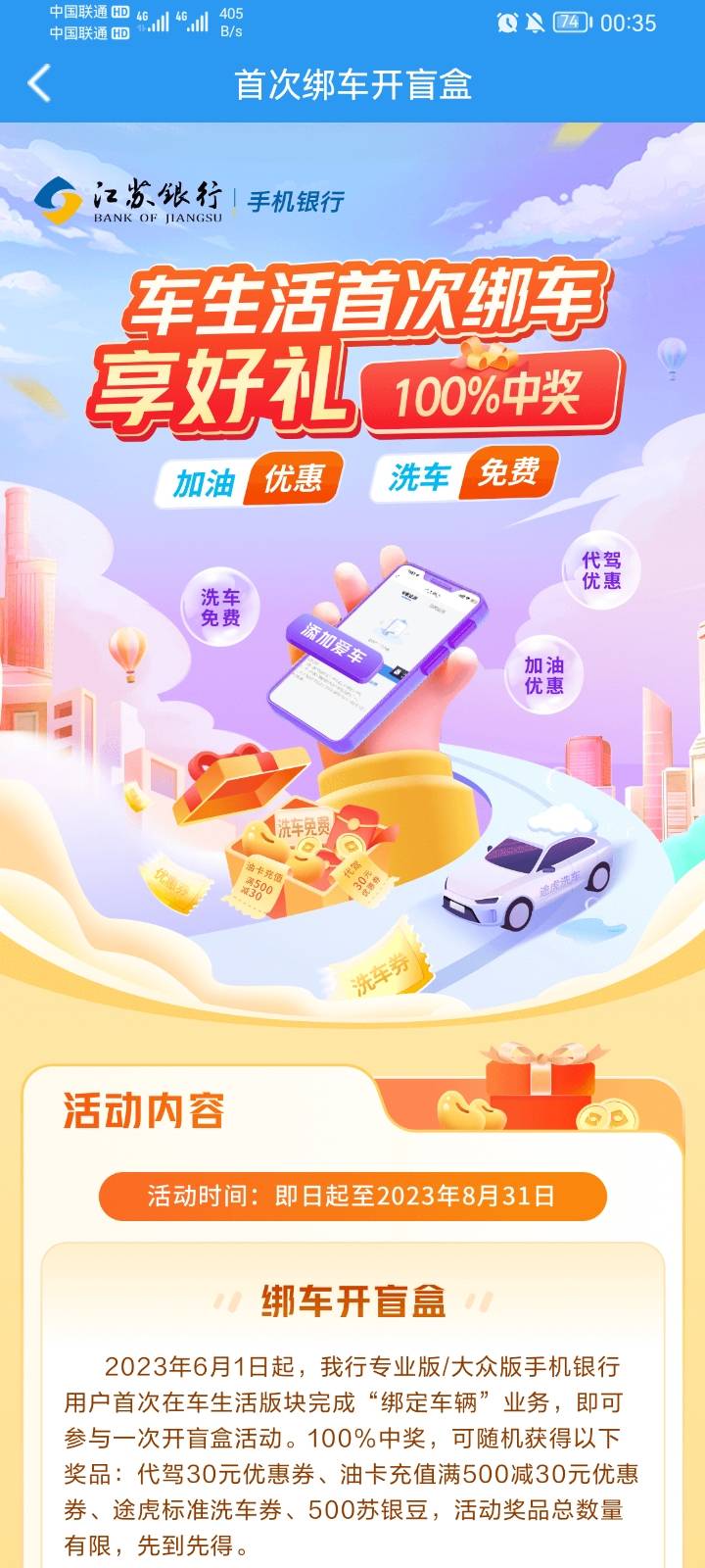 不知道有没有人发过,江苏银行,首页,车生活点进去,首绑车,胡乱填车牌抽