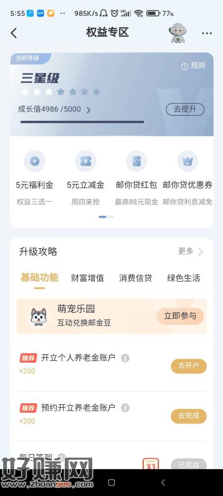邮政银行APP-我的-权益专区