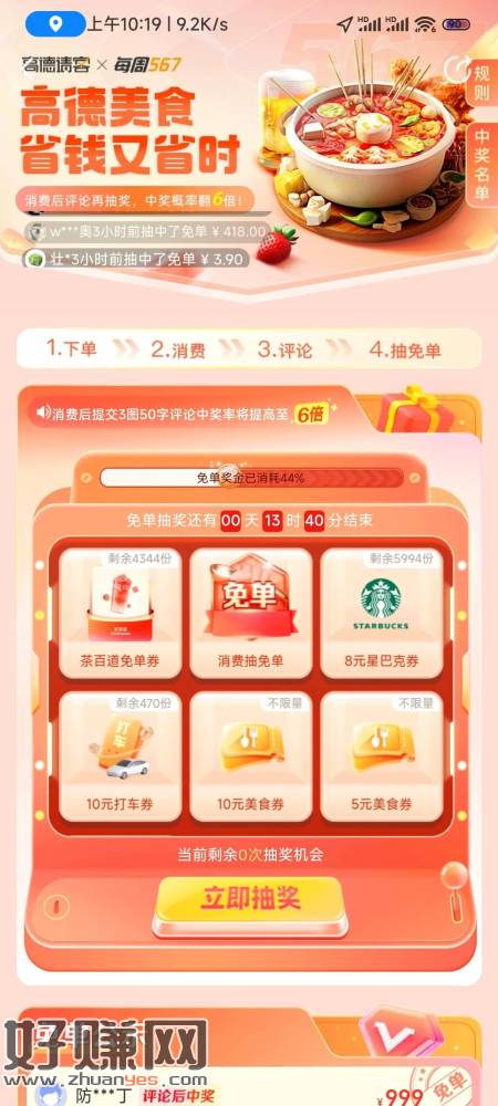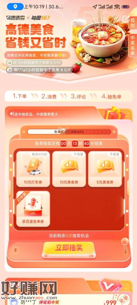 高德地图搜喜茶然后跳出免单抽奖 进去任务做完抽, 记住你想