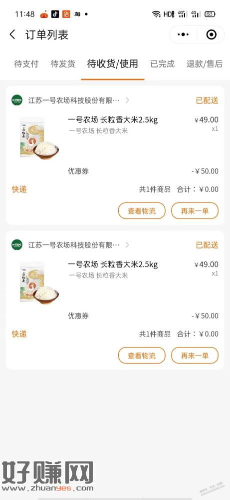 微信小程序 江南好生活 亲测已发货 0撸2.5kg大米 50无门槛是可以无限领的 具体方法不细说 自己研究