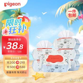 38.8,贝亲 (Pigeon)婴儿湿纸巾100片*6包
