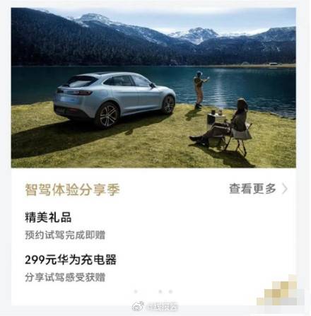 华为商城App-首页-AITo汽车-进去 下滑到中间,华为汽车预约试驾,免费得299元的充电宝