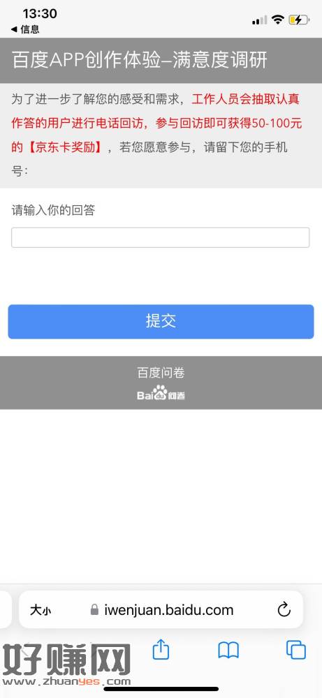 【百度】诚邀您参与有奖调研,成功完成抽京东卡,戳
