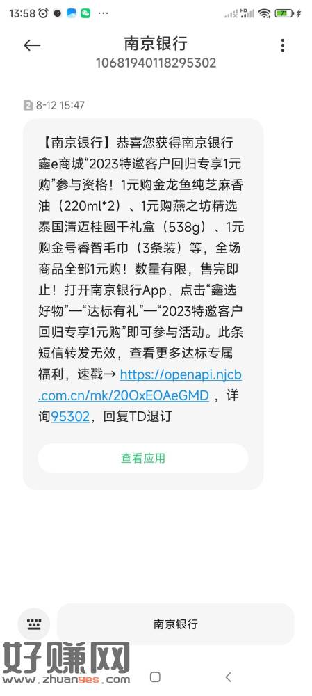南京银行送了张券