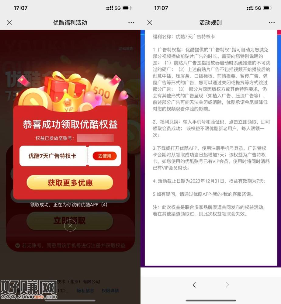【优酷免费领取7天秒广告特权】微信打开网址直接领