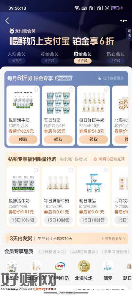 10点 支付宝会员,鲜奶酸奶进去,铂金会员以上有1