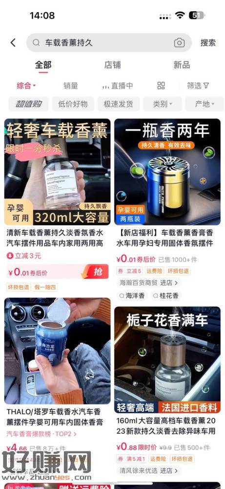 抖音商店 搜 车载香薰持久 第一个商家一分钱一瓶 抢