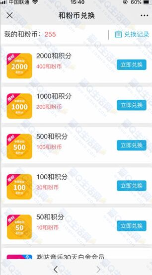 2.抽到的500MB到账后是变成和粉币 使用和粉币兑换1000积分 1000积分兑换10元话费