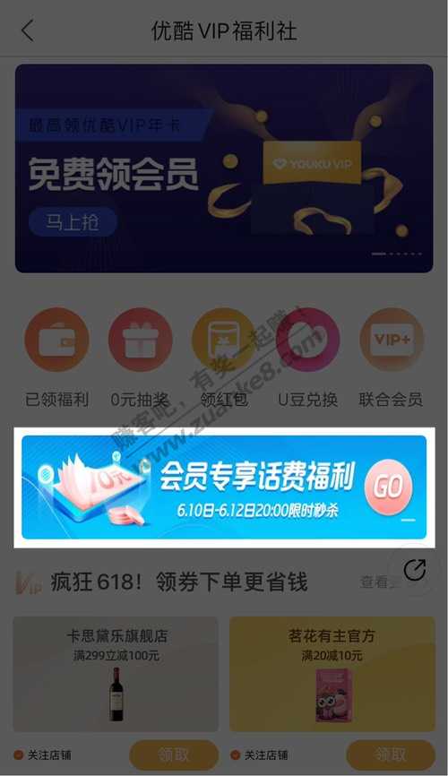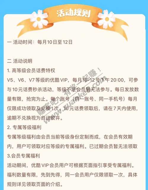 活动路径:优酷APP-会员-VIP福利-banner会员专享话费福利