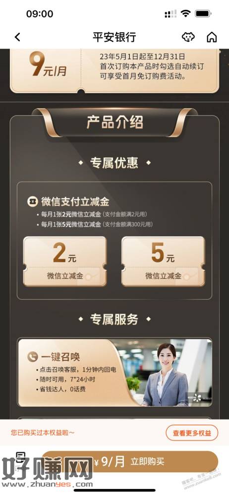 平安7元立减金,2元+300-5,共7元