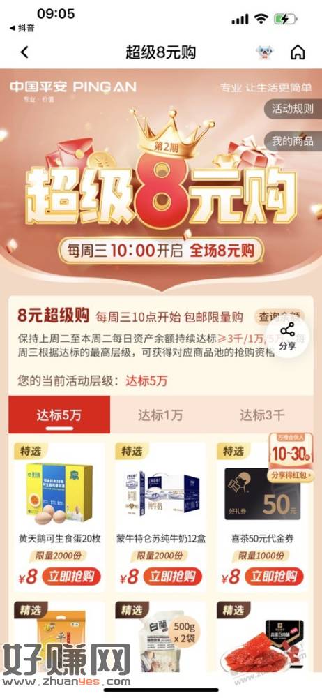 扔5w,抢喜茶50,43润,准点蹲,抢到荚果