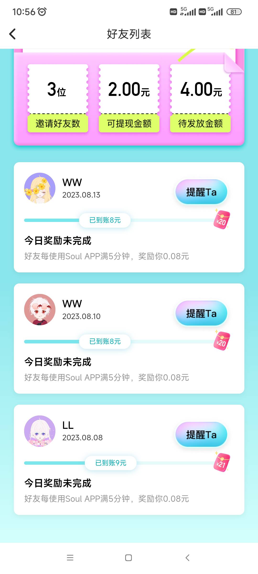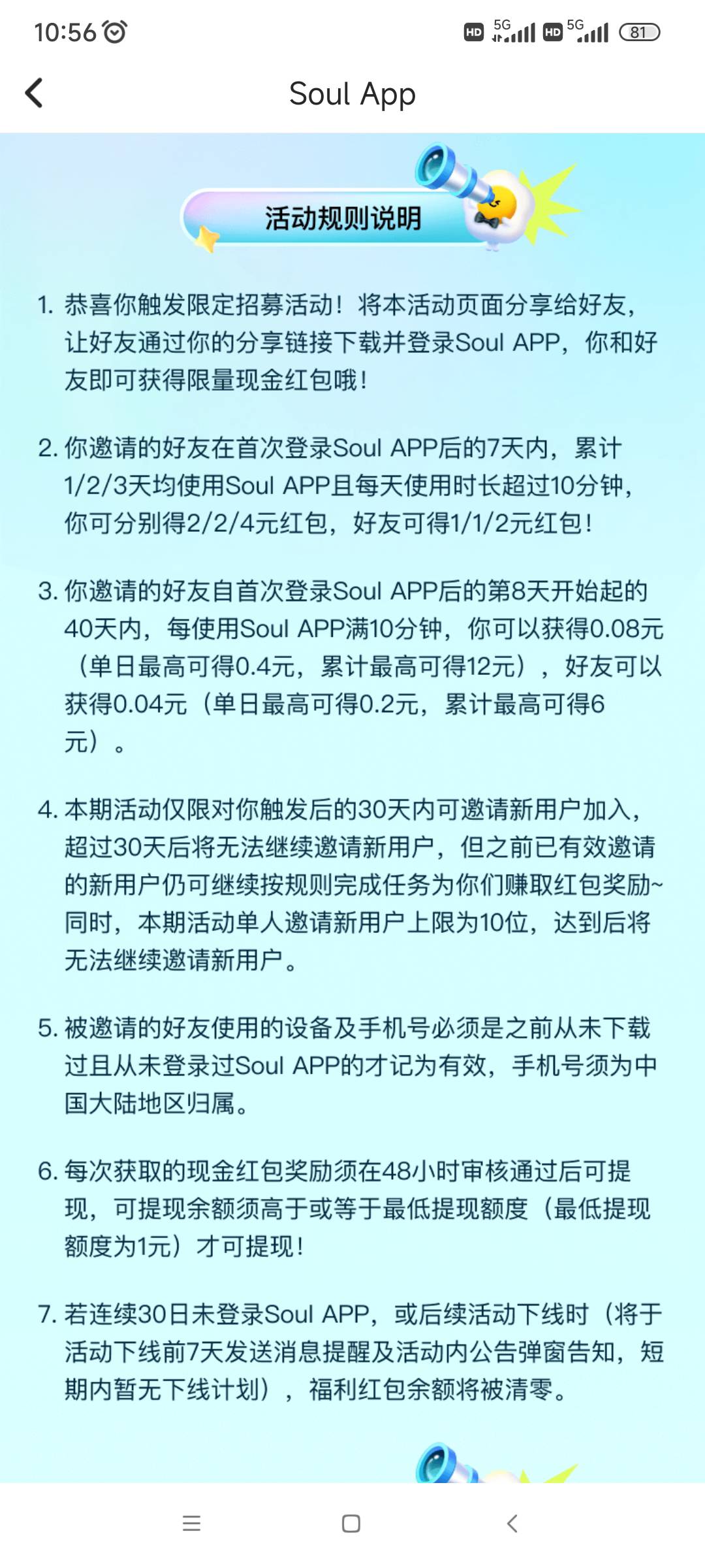 首发soul小毛,多手机号冲,邀请一号8毛,后续还能卖掉