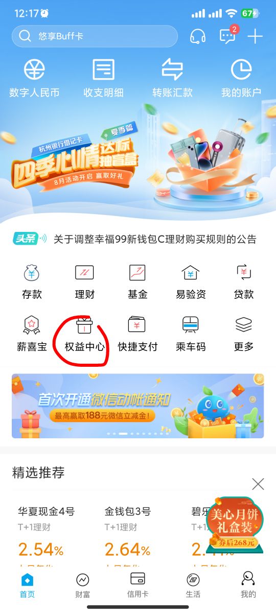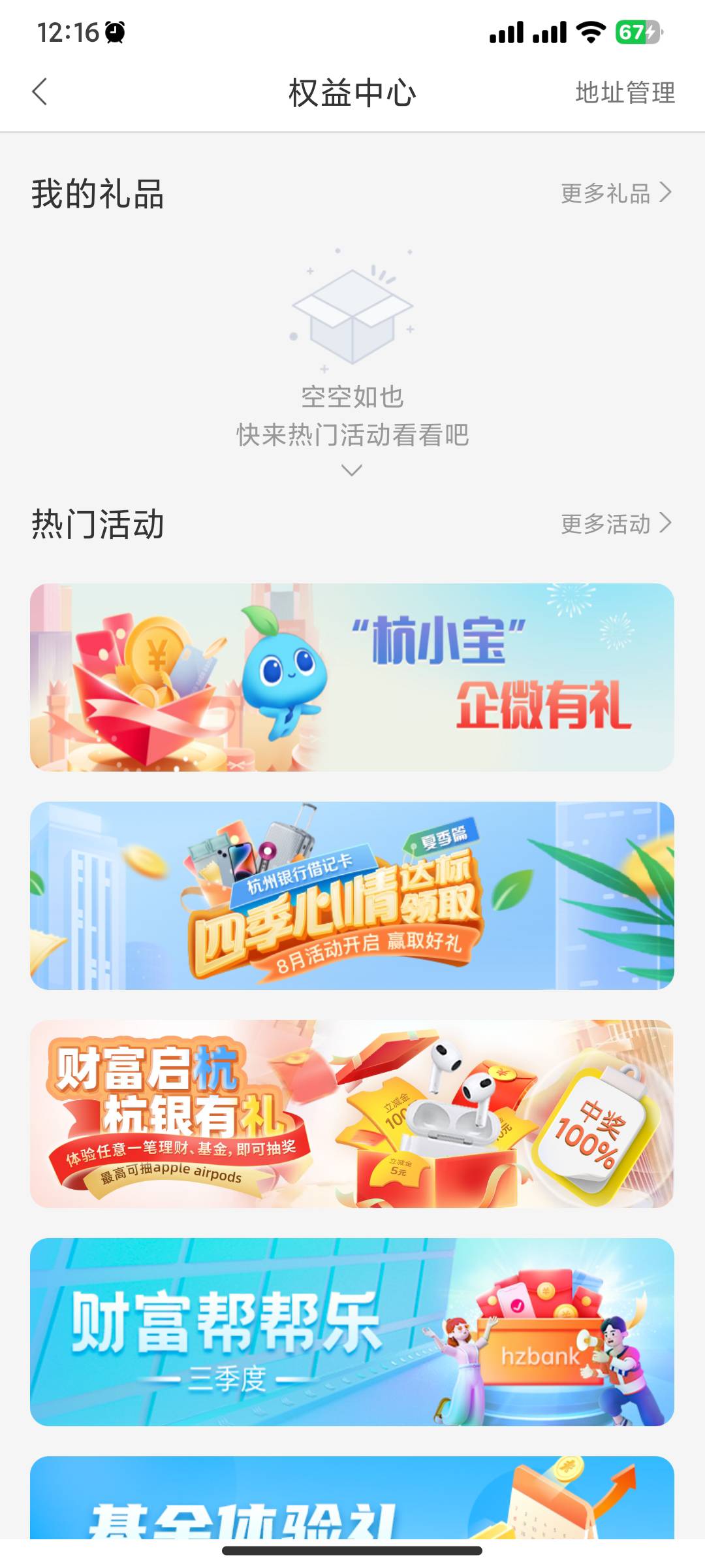 首发 杭州银行app(不是宝石山那个)开过二类的 首页权益中心进去横幅